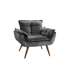 Namoradeira + 2 Poltronas Opalla Decorativa Reforçada Recepção Sala De Estar Suede - Cinza