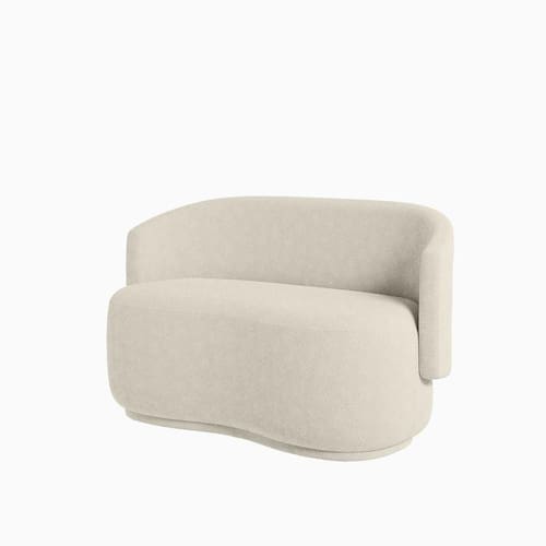 Revestida em tecido Boucle. O termo Boucle é derivado da palavra francesa que significa encaracolado ou anéis.