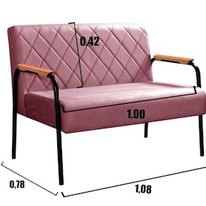 É necessário que haja uma ou mais pessoas no local para receber, desembalar, e conferir o produto. Acompanha Almofadas extras: Não Acompanha Puff: Não Almofada do assento: Não Possui Almofada do encosto: Não Possui Altura do assento até o chão: 0 cm Altura do Encosto: 85 cm Ambiente Principal: Sala de Estar Complexidade da Montagem: Baixa: pode ser montado por uma pessoa sozinha Cor: Rosa Cor do Produto: Rosa Design Assinado: Não Enchimento do Braço: Não Possui Encosto para a Cabeça: Não Estampado: Não Extensível: Não Informações Complementares: 120Kg por acento Itens Inclusos: 1 Base Ludmilla Namoradeira + 2 Braços ( Devem Ser Fixados) Kit de Parafuso Manual de Montagem e Instalação: https://cdn2.madeiramadeira.com.br/atributo/gnb-comercio-de-moveis/2053811-5695-17186318690002.pdf Material do Braço: Aço e Madeira Material dos Pés: Aço Modelo de Poltrona: Fixo Necessita Montagem: Sim Origem do Produto: Nacional Peso: 16 kg Possui Percintas Elásticas: Sim Possui Pés: 04 Possui Rodízio: Não Recomendações de Uso, Manutenção e Limpeza: Limpeza e cuidados: pode ser utilizado aspirador de pó, escova com cerdas macias ou limpeza a seco. Não utilizar produtos químicos, abrasivos ou limpeza a vapor. Evitar exposição prolongada ao sol. Sistema de Montagem: Fixar os Braços Suporta Até (kg): 120 kg Tecido Predominante: Suede Tipo de Assento: Fixo Tipo de Encosto: Fixo Tipo de Poltrona: Decorativa