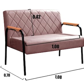 É necessário que haja uma ou mais pessoas no local para receber, desembalar, e conferir o produto. Acompanha Almofadas extras: Não Acompanha Puff: Não Almofada do assento: Não Possui Almofada do encosto: Não Possui Altura do assento até o chão: 0 cm Altura do Encosto: 85 cm Ambiente Principal: Sala de Estar Complexidade da Montagem: Baixa: pode ser montado por uma pessoa sozinha Cor: Rose Cor do Produto: Rosê Design Assinado: Não Enchimento do Braço: Não Possui Encosto para a Cabeça: Não Estampado: Não Extensível: Não Informações Complementares: 120Kg por acento Itens Inclusos: 1 Base Ludmilla Namoradeira + 2 Braços ( Devem Ser Fixados) Kit de Parafuso Manual de Montagem e Instalação: https://cdn2.madeiramadeira.com.br/atributo/gnb-comercio-de-moveis/2053811-5695-17186318690002.pdf Material do Braço: Aço e Madeira Material dos Pés: Aço Modelo de Poltrona: Fixo Necessita Montagem: Sim Origem do Produto: Nacional Peso: 16 kg Possui Percintas Elásticas: Sim Possui Pés: 04 Possui Rodízio: Não Recomendações de Uso, Manutenção e Limpeza: Limpeza e cuidados: pode ser utilizado aspirador de pó, escova com cerdas macias ou limpeza a seco. Não utilizar produtos químicos, abrasivos ou limpeza a vapor. Evitar exposição prolongada ao sol. Sistema de Montagem: Fixar os Braços Suporta Até (kg): 120 kg Tecido Predominante: Veludo Tipo de Assento: Fixo Tipo de Encosto: Fixo Tipo de Poltrona: Decorativa