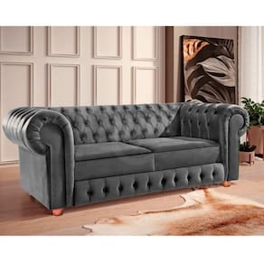 Encosto e Braços: Almofada fixa com capitonê, espuma D28 Soft de 7cm, percinta elástica italiana.