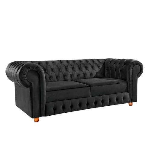 Encosto e Braços: Almofada fixa com capitonê, espuma D28 Soft de 7cm, percinta elástica italiana.