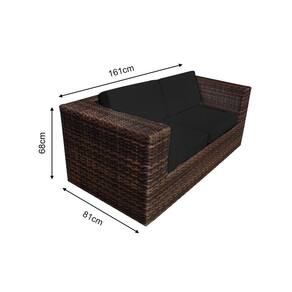Namoradeira Copacabana Quadrada em Junco Almofada Preta - Argila - Marrom