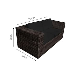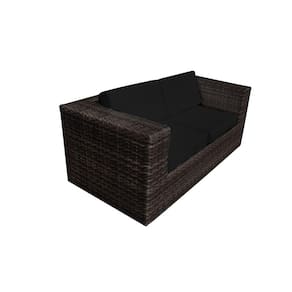 Namoradeira Copacabana Quadrada em Junco Almofada Preta - Café - Marrom