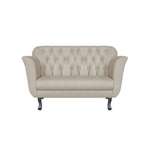 Namoradeira Decorativa Dália Couro Bege 2 Lugares Pés Madeira Ms Decor
