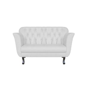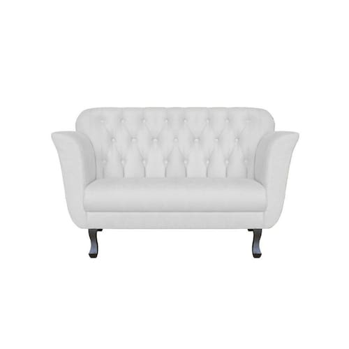 Namoradeira Decorativa Dália Couro Branco 2 Lugares Pés Madeira Ms Decor