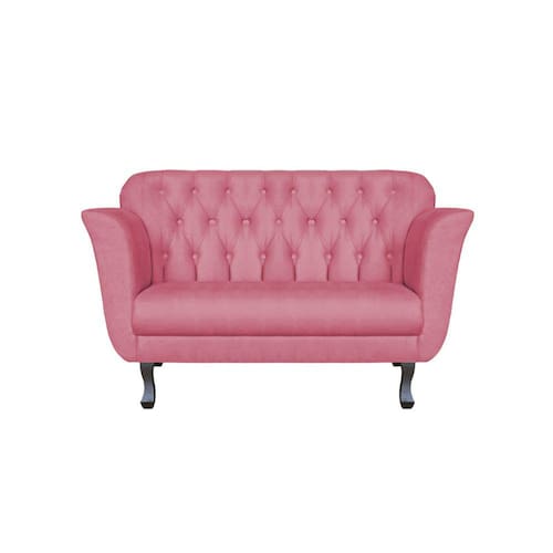 Namoradeira Decorativa Dália Suede Rosa 2 Lugares Pés Madeira Ms Decor