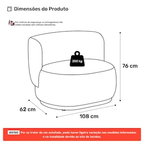 ** POR SE TRATAR DE UM ESTOFADO, AS MEDIDAS PODEM SOFRER UMA VARIAÇÃO DE ATÉ 3 CM.