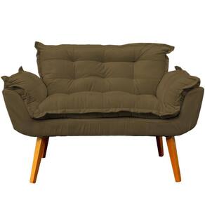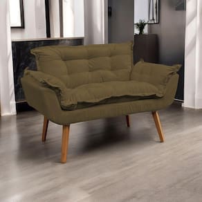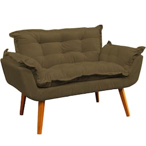 Estrutura em madeira de eucalipto, garantindo durabilidade e resistência, revestimento em tecido suede, com toque macio e refinado, enchimento em fibra siliconada, proporcionando conforto excepcional e pés em madeira na tonalidade castanho, agregando charme e estabilidade.