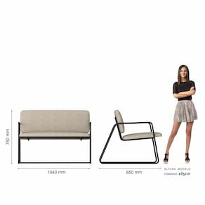 Detalhes Técnicos - Assento e Encosto Tapeçados, Estofados e Fixos - Espuma do Assento e do Encosto: D20 - Tonalidade: Preto Fosco (estrutura)/Suede Bege(estofado) - Material: Metalon - Medida Poltrona: A: 75CM x L: 104CM x P: 85CM - Medida do chão até o assento: 45cm de altura - Poltrona suporta até 120KG - Montagem: Difícil