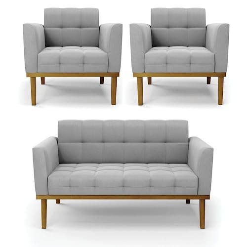 Você irá receber: 01 Sofá Namoradeira e 02 Poltronas - Entregue em: 03 Volumes