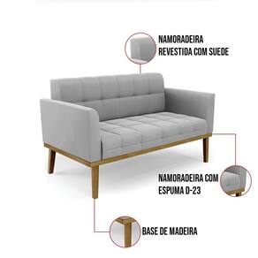 Você gosta de colecionar vários momentos memoráveis com sua família e amigos? Que tal recebê-los, com móveis de altíssima qualidade que só a D'Rossi tem? O Sofá Namoradeira com Poltrona Elisa é adequado para você! Seu design retrô é a grande tendência do momento. Pode ser utilizado em diversos espaços da casa, em salas, hall de entrada, quartos, cozinhas, varanda, sacada, escritório, dentre outros. Contém as seguintes características: A estrutura é feita de madeira de Eucalipto 100% de reflorestamento, e a Base de Madeira Fixa Castanho, além de ser resistente e durável, suporta em média até 120 kg. Assento, encosto e braços, contém enchimento de espuma D-23 e é estofada em tecido Suede, no tom Cinza, que oferece muito conforto e resistência ao sentar, com aquela sensação de maciez e aconchego. Possui também, detalhes de costura no encosto e assento, resultando em um acabamento impecável, conferindo muito mais valor e elegância ao seu espaço. Para complementar a decoração com esse lindo kit Sofá Namoradeira com 02 Poltronas Elisa, a dica é utilizar mantas, almofadas ou vasinho de flor. E pronto, seu cantinho estará perfeito para descansar e relaxar! Aqui, você encontra várias opções, para que seus amigos e familiares se sintam acolhidos. Garanta já seu kit Sofá Namoradeira com 02 Poltronas Elisa.