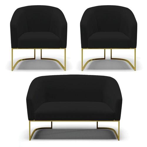 Você irá receber: 01 Sofá Namoradeira e 02 Poltronas - Entregue em: 03 Volumes