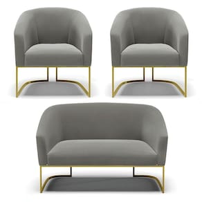 O Sofá Namoradeira 2 lugares e 2 Poltronas Stella é uma peça que combina elegância, conforto e durabilidade. Este conjunto tem um design moderno e sofisticado, com Base Industrial Dourado e revestimento em tecido Suede, que harmonizam com qualquer ambiente. Ele é ideal para sala de estar, recepções, mesa de jantar ou qualquer outro espaço que você queira decorar com estilo e bom gosto. Ele tem uma estrutura em madeira de reflorestamento eucalipto, que garante a resistência e a sustentabilidade do produto. Ele suporta até 120 kg de peso, podendo ser utilizado por pessoas de diferentes biotipos. Ele tem um acabamento reforçado e espuma de qualidade D23, que oferece maciez e aconchego. Tem pés em aço carbono e pintura eletrostática, que protegem o produto contra corrosão e desgaste. Ele tem assento com persintas elásticas, que proporcionam flexibilidade e conforto. O kit Stella é um produto de alta qualidade, beleza e funcionalidade. Ele é fácil de transportar, pois tem um peso leve e um tamanho compacto. O Sofá Namoradeira 2 lugares e 2 Poltronas Stella é um produto que vai fazer a diferença na sua decoração e no seu bem-estar. Ele vai trazer charme, conforto e durabilidade para o seu ambiente. Aproveite essa oferta e leve para casa um Sofá Namoradeira 2 lugares e 2 Poltronas qualidade por um preço incrível. Essa é a sua chance de ter um kit maravilhoso por um preço imperdível. Corra e garanta seu Sofá Namoradeira 2 lugares e 2 Poltronas antes que acabe o estoque!