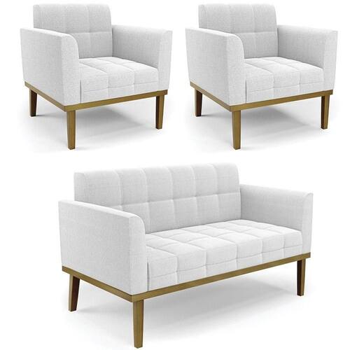 A Namoradeira e 2 Poltronas Base Madeira Castanho Ana Bouclé Off White, da Ibiza é o conjunto ideal para quem busca beleza, conforto e versatilidade. Você pode usar na sua Sala De Estar, recepção ou qualquer outro ambiente que desejar.