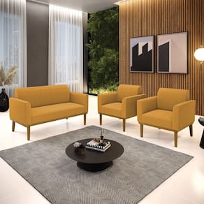 Você irá Receber: 01 Sofá Namoradeira e 02 Poltronas - Entregue em: 03 Volumes