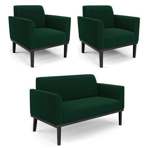 Namoradeira e 2 Poltronas Base Madeira Preto Marisa Bouclê D03 - D`Rossi - Verde