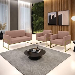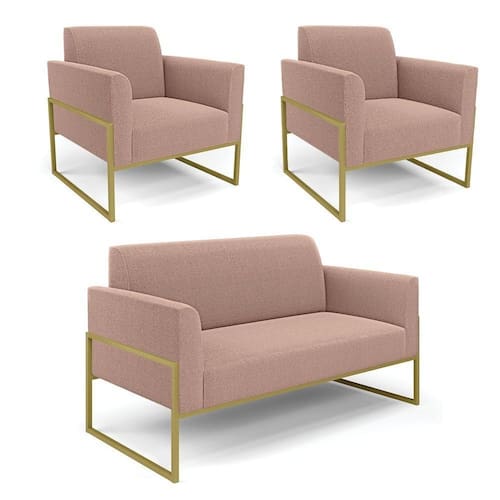 O Sofá Namoradeira e 2 Poltronas Marisa é a escolha perfeita para quem deseja unir conforto e comodidade em um estilo elegante. Com um design único, ele possui uma Base Industrial Alta em Metal Dourado que harmoniza com o seu belíssimo tom Rosê, criando uma combinação elegante de conforto e estilo. Ele é perfeito para quem busca móveis que não só sejam bonitos, mas que também proporcionem bem-estar. Ideal para compor salas de estar, recepções, bibliotecas, salas de leitura, espaços de design e até áreas comerciais, essa peça versátil é pensada para ambientes que excluam beleza e aconchego. Sua estrutura, em madeira de reflorestamento de eucalipto, oferece resistência e sustentabilidade, suportando até 180 kg, garantindo segurança para usuários de diferentes biotipos. O conforto é outro destaque, com estofado em espuma prorelax D-23, que proporciona suporte e maciez ideais. Revestido em Bouclê, um tecido maleável e sofisticado, Sofá Namoradeira e 2 Poltronas Marisa segue a tendência do momento com um toque suave e quente, remetendo à textura natural da lã. Leve e fácil de transportar, Sofá Namoradeira e 2 Poltronas é um item que agrega charme e durabilidade ao seu espaço. Não perca a oportunidade de adquirir essa peça exclusiva que fará toda a diferença na sua decoração e no seu bem-estar. Aproveite agora!OBSERVAÇÃO IMPORTANTE: A é realizada no informado, não realizamos o para andares superiores, como subir escadas, elevadores ou guinchos. Não realizamos montagens, desmontagens ou instalações. Todos esses serviços são de responsabilidade do comprador. Dimensões do Sofá Namoradeira: Altura Total: 81 cm Largura Total: 114 cm Profundidade Total: 64 cm Altura do Encosto: 36 cm Largura do Assento: 96 cm Profundidade do Assento: 48 cm Altura do chão ao Assento: 45 cm Espessura do Braço: 9 cm Altura interna do Braço: 20 cm Espessura do Assento: 18 cm Tamanho dos pés: 30 cm Peso: 20 kg Dimensões do Poltrona: Altura Total: 81 cm Largura Total: 64 cm Profundidade Total: 64 cm Altura do Encosto: 36 cm Largura do Assento: 47 cm Profundidade do Assento: 48 cm Altura do chão ao Assento: 45 cm Espessura do Braço: 9 cm Altura interna do Braço: 20 cm Espessura do Assento: 18 cm Tamanho dos pés: 30 cm Peso: 16 kg Especificações do Produto: Estrutura: Madeira de Reflorestamento de Eucalipto Espuma: D-23 Tecido: Bouclê Peso Suportado: Até 180 Kg Tipo de Pés: Base Industrial AltaTipo de Encosto: Fixo Tipo de Assento: Fixo Complexidade da Montagem: Baixo Montagem: O produto vai montado, apenas parafusar a base : 90 dias contra de fabricação Instruções de Limpeza: Utilizar um pano limpo e levemente úmido Você irá Receber: 01 Sofá Namoradeira e 02 Poltronas - Entregue em: 03 Volumes