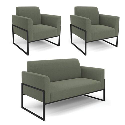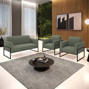 Namoradeira e 2 Poltronas Industrial Alta Preto Marisa Bouclê D03 - D`Rossi - Verde Cinza
