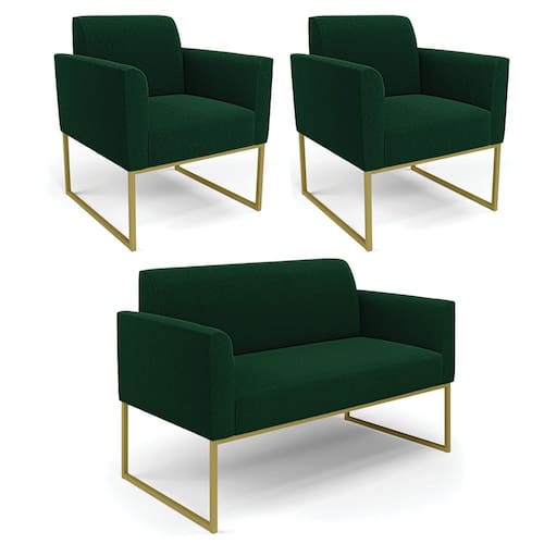 O Sofá Namoradeira e 2 Poltronas Marisa é a escolha perfeita para quem deseja unir conforto e comodidade em um estilo elegante. Com um design único, ele possui uma Base Industrial em Metal Dourado que harmoniza com o seu belíssimo tom Verde, criando uma combinação elegante de conforto e estilo. Ele é perfeito para quem busca móveis que não só sejam bonitos, mas que também proporcionem bem-estar. Ideal para compor salas de estar, recepções, bibliotecas, salas de leitura, espaços de design e até áreas comerciais, essa peça versátil é pensada para ambientes que excluam beleza e aconchego. Sua estrutura, em madeira de reflorestamento de eucalipto, oferece resistência e sustentabilidade, suportando até 180 kg, garantindo segurança para usuários de diferentes biotipos. O conforto é outro destaque, com estofado em espuma prorelax D-23, que proporciona suporte e maciez ideais. Revestido em Bouclê, um tecido maleável e sofisticado, Sofá Namoradeira e 2 Poltronas Marisa segue a tendência do momento com um toque suave e quente, remetendo à textura natural da lã. Leve e fácil de transportar, Sofá Namoradeira e 2 Poltronas é um item que agrega charme e durabilidade ao seu espaço. Não perca a oportunidade de adquirir essa peça exclusiva que fará toda a diferença na sua decoração e no seu bem-estar. Aproveite agora e garanta o seu antes que o estoque acabe!