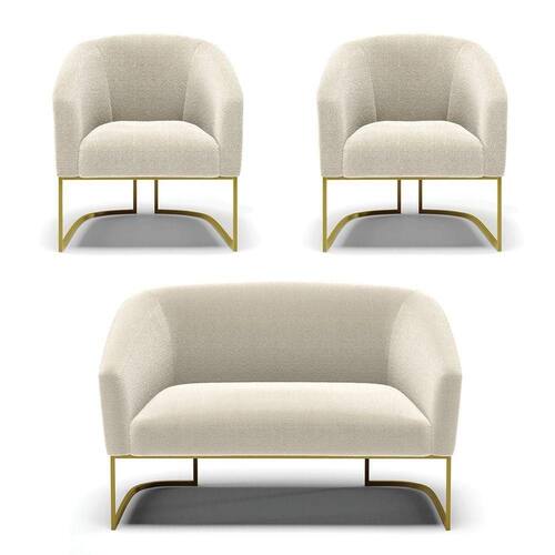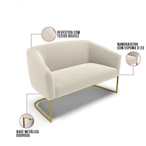 Tem novidades chegando por aqui! Olha só essa nossa inéditaNamoradeira e 2 Poltronas Stella Bouclê. Sim, as melhores opções em Namoradeira estão aqui! A Namoradeira e 2 Poltronas Stella Bouclê é para todas as ocasiões, é ideal para você relaxar, assistir tv ou ler um livro, mantendo-o confortável ao longo do dia! Um estofado versátil, que foge do convencional pelo seu design e tecido luxuoso. Seu formato curvo, marcante e sofisticado, oferece conforto de forma excepcional, com aquela sensação de abraço, que deixa o coração quentinho! Desenvolvida com atenção aos detalhes, para atender todas suas expectativas e necessidades. Seu aspecto arredondado e anatômico, possibilita que a postura fique sempre alinhada, mantendo a coluna na posição correta. Ela dispõe de um acabamento impecável, revestida em Bouclê, um tecido maleável que além de ser muito bonito, é a grande tendência do momento, por ser uma lã mais refinada, quente, com toque suave e agradável, semelhante à textura natural da ovelha. Contém uma estrutura robusta, sua sustentação é dada pela Base Industrial no tom Dourado, que garantem mais segurança e firmeza ao sentar-se. Já o enchimento é feito em espuma D-23 no encosto e assento, garantindo maior conforto ao usuário. Ah! Vale a pena lembrar que a Namoradeira e 2 Poltronas Stella Bouclê, foi produzida em quantidades limitadas, para aqueles que procuram criar um visual diferenciado e exclusivo. Então, não deixe de aproveitar esse lançamento, hem! Leve a sua agora mesmo. Dimensões da Poltrona: Altura Total: 81 cm Largura Total: 68 cm Profundidade Total: 60 cm Altura do Encosto: 40 cm Largura do Assento: 45 cm Profundidade do Assento: 45 cm Altura do chão ao Assento: 45 cm Espessura do Assento: 15 cm Espessura do braço: 7 cm Altura do chão ao braço: 70 cm Altura interna do braço: 28 cm Tamanho dos pés: 30 cm Peso: 18 kg Dimensões da Namoradeira: Altura Total: 80 cm Largura Total: 120 cm Profundidade Total: 63 cm Altura do Encosto: 39 cm Largura do Assento: 100 cm Profundidade do Assento: 45 cm Altura do chão ao Assento: 45 cm Espessura do Assento: 15 cm Espessura do braço: 7 cm Altura do chão ao braço: 70 cm Altura interna do braço: 25 cm Tamanho dos pés: 30 cm Peso: 26 kg Especificações do Produto: Estrutura: Madeira Eucalipto Espuma: D-23 Tecido: Bouclê Peso Suportado: Até 180 Kg Tipo de Pés: Base Industrial Dourado Tipo de Encosto: Fixo Tipo de Assento: Fixo Complexidade da Montagem: Baixo Montagem: O produto vai montado, apenas parafusar a base Garantia: 90 dias contra defeito de fabricação Instruções de Limpeza: Utilizar um pano limpo e levemente úmido Você irá Receber: 01 Sofá Namoradeira e 02 Poltronas - Entregue em: 03 Volumes