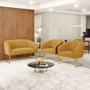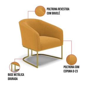 Tem novidades chegando por aqui! Olha só essa nossa inéditaNamoradeira e 2 Poltronas Stella Bouclê. Sim, as melhores opções em Namoradeira estão aqui! A Namoradeira e 2 Poltronas Stella Bouclê é para todas as ocasiões, é ideal para você relaxar, assistir tv ou ler um livro, mantendo-o confortável ao longo do dia! Um estofado versátil, que foge do convencional pelo seu design e tecido luxuoso. Seu formato curvo, marcante e sofisticado, oferece conforto de forma excepcional, com aquela sensação de abraço, que deixa o coração quentinho! Desenvolvida com atenção aos detalhes, para atender todas suas expectativas e necessidades. Seu aspecto arredondado e anatômico, possibilita que a postura fique sempre alinhada, mantendo a coluna na posição correta. Ela dispõe de um acabamento impecável, revestida em Bouclê em tom Mostarda, um tecido maleável que além de ser muito bonito, é a grande tendência do momento, por ser uma lã mais refinada, quente, com toque suave e agradável, semelhante à textura natural da ovelha. Contém uma estrutura robusta, sua sustentação é dada pela Base Industrial no tom Dourado, que garantem mais segurança e firmeza ao sentar-se. Já o enchimento é feito em espuma D-23 no encosto e assento, garantindo maior conforto ao usuário. Ah! Vale a pena lembrar que a Namoradeira e 2 Poltronas Stella Bouclê, foi produzida em quantidades limitadas, para aqueles que procuram criar um visual diferenciado e exclusivo. Então, não deixe de aproveitar esse lançamento, hem! Leve a sua agora mesmo.