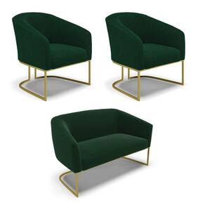 Namoradeira E 2 Poltronas Industrial Dourado Stella Bouclê Verde D03 - D`rossi