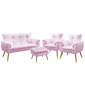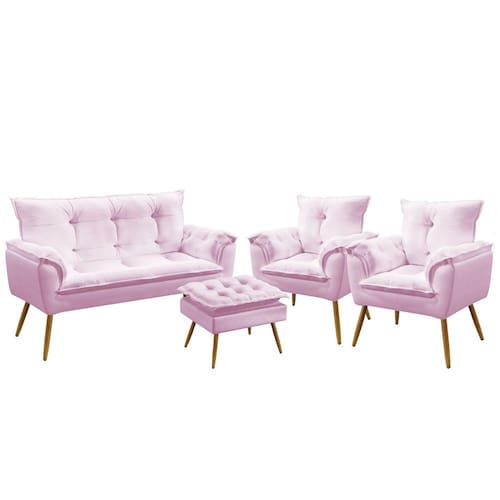 Namoradeira e 2 Poltronas Opala com Puff Lunar Sued Aradecor - Rosa Claro