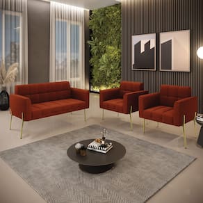 Você irá Receber: 01 Sofá Namoradeira e 02 Poltronas - Entregue em: 03 Volumes