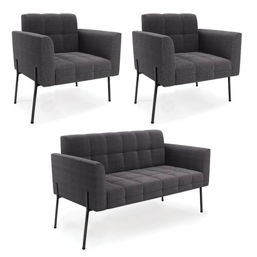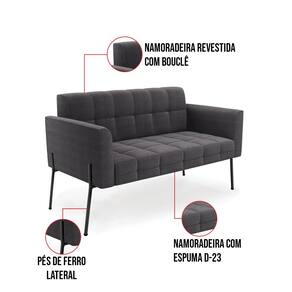 O Sofá Namoradeira e 2 Poltronas Elisa é uma mobília que combina elegância, conforto e durabilidade. Ele tem um design retrô e sofisticado, com Pés Laterais de Ferro Preto e revestimento em tecido Bouclê. Ele é ideal para sala de estar, recepções, escritórios, cozinhas ou qualquer outro espaço que você queira decorar com estilo e bom gosto. Ele tem uma estrutura em madeira de reflorestamento eucalipto, que garante a resistência e a sustentabilidade do produto. Ele suporta até 180 kg de peso, podendo ser utilizada por pessoas de diferentes biotipos. Ele tem um acabamento reforçado e espuma de qualidade D23, que oferece maciez e aconchego. Ele contém detalhes de costura no encosto e assento, resultando em um acabamento impecável, conferindo muito mais valor e elegância ao produto. O Sofá Namoradeira e 2 Poltronas Elisa é um móvel de alta qualidade, beleza e funcionalidade. Ele é fácil de transportar, pois tem um peso leve e um tamanho compacto. O Sofá Namoradeira e 2 Poltronas Elisa é um produto que vai fazer a diferença na sua decoração e no seu bem-estar. Ele vai trazer charme, conforto e durabilidade para o seu ambiente. Aproveite essa oferta e leve para casa um Sofá Namoradeira e 2 Poltronas de qualidade por um preço incrível. Essa é a sua chance de ter um Sofá Namoradeira e 2 Poltronas maravilhoso por um preço imperdível. Corra e garanta o seu antes que acabe o estoque!