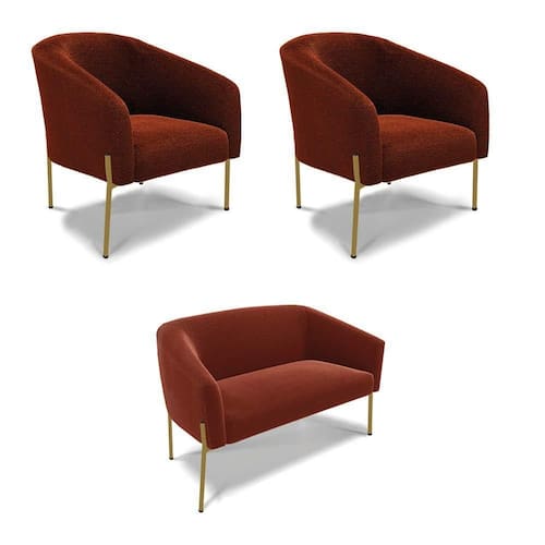 Namoradeira E 2 Poltronas Pé Ferro Dourado Stella Bouclê D03 - D'rossi Cor Terra