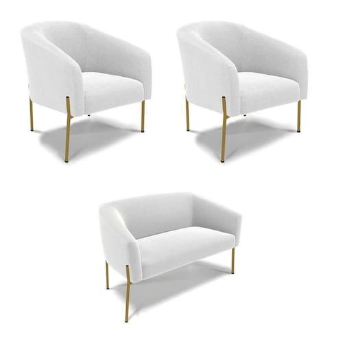 Tem novidades chegando por aqui! Olha só essa nossa inéditaNamoradeira e 2 Poltronas Stella Bouclê. Sim, as melhores opções em Namoradeira estão aqui! A Namoradeira e 2 Poltronas Stella Bouclê é para todas as ocasiões, é ideal para você relaxar, assistir tv ou ler um livro, mantendo-o confortável ao longo do dia! Um estofado versátil, que foge do convencional pelo seu design e tecido luxuoso. Seu formato curvo, marcante e sofisticado, oferece conforto de forma excepcional, com aquela sensação de abraço, que deixa o coração quentinho! Desenvolvida com atenção aos detalhes, para atender todas suas expectativas e necessidades. Seu aspecto arredondado e anatômico, possibilita que a postura fique sempre alinhada, mantendo a coluna na posição correta. Ela dispõe de um acabamento impecável, revestida em Bouclê em tom Off White, um tecido maleável que além de ser muito bonito, é a grande tendência do momento, por ser uma lã mais refinada, quente, com toque suave e agradável, semelhante à textura natural da ovelha. Contém uma estrutura robusta, sua sustentação é dada pelos Pés de Ferro no tom Dourado, que garantem mais segurança e firmeza ao sentar-se. Já o enchimento é feito em espuma D-23 no encosto e assento, garantindo maior conforto ao usuário. Ah! Vale a pena lembrar que a Namoradeira e 2 Poltronas Stella Bouclê, foi produzida em quantidades limitadas, para aqueles que procuram criar um visual diferenciado e exclusivo. Então, não deixe de aproveitar esse lançamento, hem! Leve a sua agora mesmo.