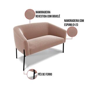 Tem novidades chegando por aqui! Olha só essa nossa inéditaNamoradeira e 2 Poltronas Stella Bouclê. Sim, as melhores opções em Namoradeira estão aqui! A Namoradeira e 2 Poltronas Stella Bouclê é para todas as ocasiões, é ideal para você relaxar, assistir ou ler um livro, mantendo-o confortável ao longo do dia! Um estofado versátil, que foge do convencional pelo seu design e tecido luxuoso. Seu formato curvo, marcante e sofisticado, oferece conforto de forma excepcional, com aquela sensação de abraço, que deixa o coração quentinho! Desenvolvida com atenção aos detalhes, para atender todas suas expectativas e necessidades. Seu aspecto arredondado e anatômico, possibilita que a postura fique sempre alinhada, mantendo a coluna na posição correta. Ela dispõe de um acabamento impecável, revestida em Bouclê em tom Rosê, um tecido maleável que além de ser muito bonito, é a grande tendência do momento, por ser uma lã mais refinada, quente, com toque suave e agradável, semelhante à textura natural da ovelha. Contém uma estrutura robusta, sua sustentação é dada pelos Pés de Ferro no tom Preto, que garantem mais segurança e firmeza ao sentar-se. Já o enchimento é feito em espuma D-23 no encosto e assento, garantindo maior conforto ao usuário. Ah! Vale a pena lembrar que a Namoradeira e 2 Poltronas Stella Bouclê, foi produzida em quantidades limitadas, para aqueles que procuram criar um visual diferenciado e exclusivo. Então, não deixe de aproveitar esse , hem! Leve a sua agora mesmo.