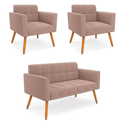 Namoradeira e 2 Poltronas Pé Palito Castanho Elisa Bouclê D03 - D`Rossi - Rosê