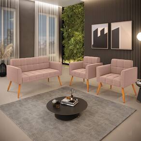 O Sofá Namoradeira e 2 Poltronas Elisa é uma mobília que combina elegância, conforto e durabilidade. Ele tem um design retrô e sofisticado, com Pés Palito Castanho e revestimento em tecido Bouclê. Ele é ideal para sala de estar, recepções, escritórios, cozinhas ou qualquer outro espaço que você queira decorar com estilo e bom gosto. Ele tem uma estrutura em madeira de reflorestamento eucalipto, que garante a resistência e a sustentabilidade do produto. Ele suporta até 180 kg de peso, podendo ser utilizada por pessoas de diferentes biotipos. Ele tem um acabamento reforçado e espuma de qualidade D23, que oferece maciez e aconchego. Ele contém detalhes de costura no encosto e assento, resultando em um acabamento impecável, conferindo muito mais valor e elegância ao produto. O Sofá Namoradeira e 2 Poltronas Elisa é um móvel de alta qualidade, beleza e funcionalidade. Ele é fácil de transportar, pois tem um peso leve e um tamanho compacto. O Sofá Namoradeira e 2 Poltronas Elisa é um produto que vai fazer a diferença na sua decoração e no seu bem-estar. Ele vai trazer charme, conforto e durabilidade para o seu ambiente. Aproveite essa oferta e leve para casa um Sofá Namoradeira e 2 Poltronas de qualidade por um preço incrível. Essa é a sua chance de ter um Sofá Namoradeira e 2 Poltronas maravilhoso por um preço imperdível. Corra e garanta o seu antes que acabe o estoque!