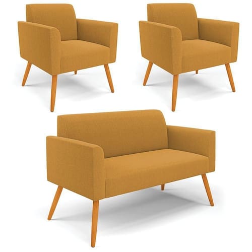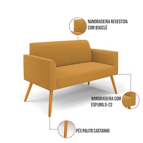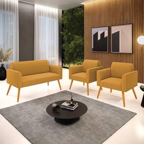 O Sofá Namoradeira e 2 Poltronas Marisa é a escolha perfeita para quem deseja unir conforto e comodidade em um estilo elegante. Com um design único, ele possui Pés Palito Castanho que harmoniza com o seu belíssimo tom Mostarda, criando uma combinação elegante de conforto e estilo. Ele é perfeito para quem busca móveis que não só sejam bonitos, mas que também proporcionem bem-estar. Ideal para compor salas de estar, recepções, bibliotecas, salas de leitura, espaços de design e até áreas comerciais, essa peça versátil é pensada para ambientes que excluam beleza e aconchego. Sua estrutura, em madeira de reflorestamento de eucalipto, oferece resistência e sustentabilidade, suportando até 180 kg, garantindo segurança para usuários de diferentes biotipos. O conforto é outro destaque, com estofado em espuma prorelax D-23, que proporciona suporte e maciez ideais. Revestido em Bouclê, um tecido maleável e sofisticado, Sofá Namoradeira e 2 Poltronas Marisa segue a tendência do momento com um toque suave e quente, remetendo à textura natural da lã. Leve e fácil de transportar, Sofá Namoradeira e 2 Poltronas é um item que agrega charme e durabilidade ao seu espaço. Não perca a oportunidade de adquirir essa peça exclusiva que fará toda a diferença na sua decoração e no seu bem-estar. Aproveite agora! OBSERVAÇÃO IMPORTANTE: A é realizada no informado, não realizamos o para andares superiores, como subir escadas, elevadores ou guinchos. Não realizamos montagens, desmontagens ou instalações. Todos esses serviços são de responsabilidade do comprador. Dimensões do Sofá Namoradeira: Altura Total: 81 cm Largura Total: 114 cm Profundidade Total: 64 cm Altura do Encosto: 64 cm Largura do Assento: 96 cm Profundidade do Assento: 48 cm Altura do chão ao Assento: 45 cm Espessura do Braço: 9 cm Altura interna do Braço: 20 cm Espessura do Assento: 18 cm Tamanho dos pés: 30 cm Peso: 20 kg Dimensões do Poltrona: Altura Total: 81 cm Largura Total: 64 cm Profundidade Total: 64 cm Altura do Encosto: 36 cm Largura do Assento: 47 cm Profundidade do Assento: 48 cm Altura do chão ao Assento: 45 cm Espessura do Braço: 9 cm Altura interna do Braço: 20 cm Espessura do Assento: 18 cm Tamanho dos pés: 30 cm Peso: 14 kg Especificações do Produto: Estrutura: Madeira de Reflorestamento de Eucalipto Espuma: D-23 Tecido: Bouclê Peso Suportado: Até 180 Kg Tipo de Pés: Pés Palito de Madeira Tipo de Encosto: Fixo Tipo de Assento: Fixo Complexidade da Montagem: Baixo Montagem: O produto vai montado, apenas rosquear os pés : 90 dias contra de fabricação Instruções de Limpeza: Utilizar um pano limpo e levemente úmido Você irá Receber: 01 Sofá Namoradeira e 02 Poltronas - Entregue em: 03 Volumes