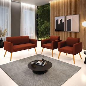 Namoradeira e 2 Poltronas Pé Palito Castanho Marisa Bouclê Terra D03 - D`Rossi - Laranja