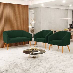 Namoradeira e 2 Poltronas Pé Palito Castanho Stella Bouclê D03 - D`Rossi - Verde