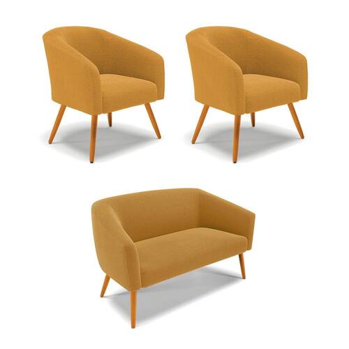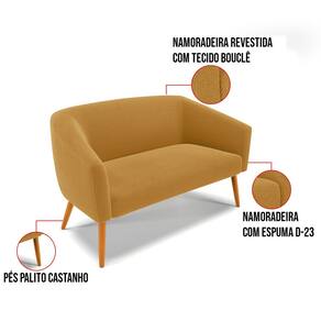 Tem novidades chegando por aqui! Olha só essa nossa inéditaNamoradeira e 2 Poltronas Stella Bouclê. Sim, as melhores opções em Namoradeira estão aqui! A Namoradeira e 2 Poltronas Stella Bouclê é para todas as ocasiões, é ideal para você relaxar, assistir tv ou ler um livro, mantendo-o confortável ao longo do dia! Um estofado versátil, que foge do convencional pelo seu design e tecido luxuoso. Seu formato curvo, marcante e sofisticado, oferece conforto de forma excepcional, com aquela sensação de abraço, que deixa o coração quentinho! Desenvolvida com atenção aos detalhes, para atender todas suas expectativas e necessidades. Seu aspecto arredondado e anatômico, possibilita que a postura fique sempre alinhada, mantendo a coluna na posição correta. Ela dispõe de um acabamento impecável, revestida em Bouclê em tom Mostarda, um tecido maleável que além de ser muito bonito, é a grande tendência do momento, por ser uma lã mais refinada, quente, com toque suave e agradável, semelhante à textura natural da ovelha. Contém uma estrutura robusta, sua sustentação é dada pelos Pés Palito no tom Castanho, que garantem mais segurança e firmeza ao sentar-se. Já o enchimento é feito em espuma D-23 no encosto e assento, garantindo maior conforto ao usuário. Ah! Vale a pena lembrar que a Namoradeira e 2 Poltronas Stella Bouclê, foi produzida em quantidades limitadas, para aqueles que procuram criar um visual diferenciado e exclusivo. Então, não deixe de aproveitar esse lançamento, hem! Leve a sua agora mesmo.