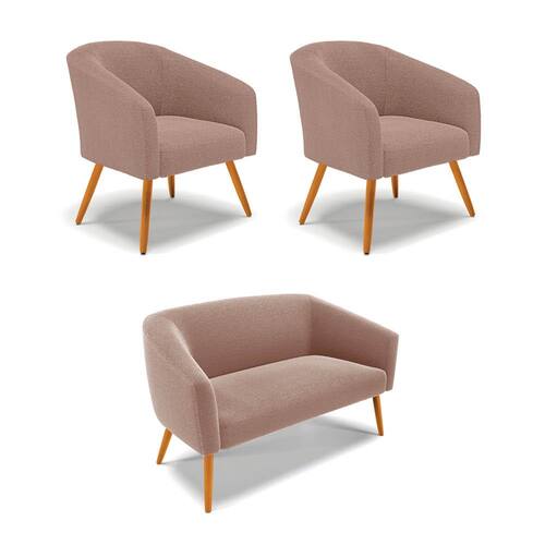 Tem novidades chegando por aqui! Olha só essa nossa inéditaNamoradeira e 2 Poltronas Stella Bouclê. Sim, as melhores opções em Namoradeira estão aqui! A Namoradeira e 2 Poltronas Stella Bouclê é para todas as ocasiões, é ideal para você relaxar, assistir tv ou ler um livro, mantendo-o confortável ao longo do dia! Um estofado versátil, que foge do convencional pelo seu design e tecido luxuoso. Seu formato curvo, marcante e sofisticado, oferece conforto de forma excepcional, com aquela sensação de abraço, que deixa o coração quentinho! Desenvolvida com atenção aos detalhes, para atender todas suas expectativas e necessidades. Seu aspecto arredondado e anatômico, possibilita que a postura fique sempre alinhada, mantendo a coluna na posição correta. Ela dispõe de um acabamento impecável, revestida em Bouclê em tom Rosê, um tecido maleável que além de ser muito bonito, é a grande tendência do momento, por ser uma lã mais refinada, quente, com toque suave e agradável, semelhante à textura natural da ovelha. Contém uma estrutura robusta, sua sustentação é dada pelos Pés Palito no tom Castanho, que garantem mais segurança e firmeza ao sentar-se. Já o enchimento é feito em espuma D-23 no encosto e assento, garantindo maior conforto ao usuário. Ah! Vale a pena lembrar que a Namoradeira e 2 Poltronas Stella Bouclê, foi produzida em quantidades limitadas, para aqueles que procuram criar um visual diferenciado e exclusivo. Então, não deixe de aproveitar esse lançamento, hem! Leve a sua agora mesmo.