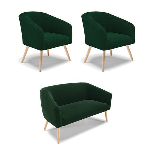 Tem novidades chegando por aqui! Olha só essa nossa inéditaNamoradeira e 2 Poltronas Stella Bouclê. Sim, as melhores opções em Namoradeira estão aqui! A Namoradeira e 2 Poltronas Stella Bouclê é para todas as ocasiões, é ideal para você relaxar, assistir tv ou ler um livro, mantendo-o confortável ao longo do dia! Um estofado versátil, que foge do convencional pelo seu design e tecido luxuoso. Seu formato curvo, marcante e sofisticado, oferece conforto de forma excepcional, com aquela sensação de abraço, que deixa o coração quentinho! Desenvolvida com atenção aos detalhes, para atender todas suas expectativas e necessidades. Seu aspecto arredondado e anatômico, possibilita que a postura fique sempre alinhada, mantendo a coluna na posição correta. Ela dispõe de um acabamento impecável, revestida em Bouclê em tom Verde, um tecido maleável que além de ser muito bonito, é a grande tendência do momento, por ser uma lã mais refinada, quente, com toque suave e agradável, semelhante à textura natural da ovelha. Contém uma estrutura robusta, sua sustentação é dada pelos Pés Palito no tom Natural, que garantem mais segurança e firmeza ao sentar-se. Já o enchimento é feito em espuma D-23 no encosto e assento, garantindo maior conforto ao usuário. Ah! Vale a pena lembrar que a Namoradeira e 2 Poltronas Stella Bouclê, foi produzida em quantidades limitadas, para aqueles que procuram criar um visual diferenciado e exclusivo. Então, não deixe de aproveitar esse lançamento, hem! Leve a sua agora mesmo.