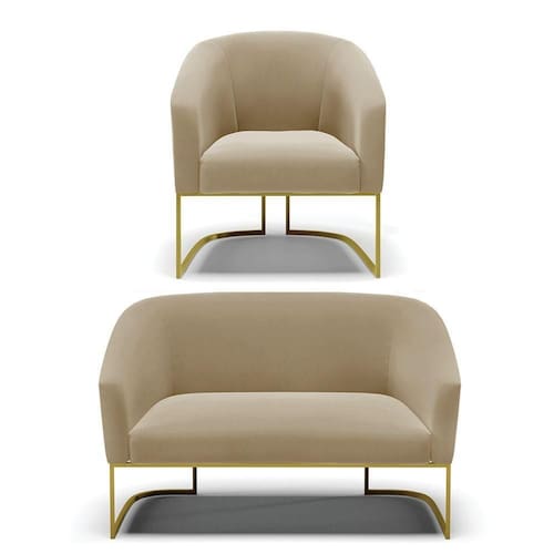 Você irá receber: 01 Sofá Namoradeira e 01 Poltrona - Entregue em: 02 Volumes