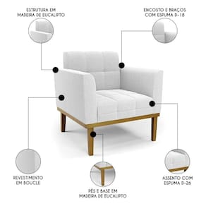 A Namoradeira e Poltrona Base Madeira Castanho Ana Bouclé Off White, da Ibiza é o conjunto ideal para quem busca beleza, conforto e versatilidade. Você pode usar na sua Sala De Estar, recepção ou qualquer outro ambiente que desejar.