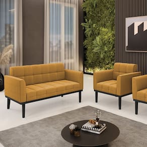 O Sofá Namoradeira e Poltrona Elisa é uma mobília que combina elegância, conforto e durabilidade. Ele tem um design retrô e sofisticado, com Base de Madeira Fixa Preto e revestimento em tecido Bouclê Mostarda, que harmonizam com qualquer ambiente. Ele é ideal para sala de estar, recepções, escritórios, cozinhas ou qualquer outro espaço que você queira decorar com estilo e bom gosto. Ele tem uma estrutura em madeira de reflorestamento eucalipto, que garante a resistência e a sustentabilidade do produto. Ele suporta até 180 kg de peso, podendo ser utilizada por pessoas de diferentes biotipos. Ele tem um acabamento reforçado e espuma de qualidade D23, que oferece maciez e aconchego. Ele contém detalhes de costura no encosto e assento, resultando em um acabamento impecável, conferindo muito mais valor e elegância ao produto. O Sofá Namoradeira e Poltrona Elisa é um móvel de alta qualidade, beleza e funcionalidade. Ele é fácil de transportar, pois tem um peso leve e um tamanho compacto. O Sofá Namoradeira e Poltrona Elisa é um produto que vai fazer a diferença na sua decoração e no seu bem-estar. Ele vai trazer charme, conforto e durabilidade para o seu ambiente. Aproveite essa oferta e leve para casa um Sofá Namoradeira e Poltrona de qualidade por um preço incrível. Essa é a sua chance de ter um Sofá Namoradeira e Poltrona maravilhoso por um preço imperdível. Corra e garanta o seu antes que acabe o estoque!