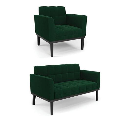 O Sofá Namoradeira e Poltrona Elisa é uma mobília que combina elegância, conforto e durabilidade. Ele tem um design retrô e sofisticado, com Base de Madeira Fixa Preto e revestimento em tecido Bouclê Verde, que harmonizam com qualquer ambiente. Ele é ideal para sala de estar, recepções, escritórios, cozinhas ou qualquer outro espaço que você queira decorar com estilo e bom gosto. Ele tem uma estrutura em madeira de reflorestamento eucalipto, que garante a resistência e a sustentabilidade do produto. Ele suporta até 180 kg de peso, podendo ser utilizada por pessoas de diferentes biotipos. Ele tem um acabamento reforçado e espuma de qualidade D23, que oferece maciez e aconchego. Ele contém detalhes de costura no encosto e assento, resultando em um acabamento impecável, conferindo muito mais valor e elegância ao produto. O Sofá Namoradeira e Poltrona Elisa é um móvel de alta qualidade, beleza e funcionalidade. Ele é fácil de transportar, pois tem um peso leve e um tamanho compacto. O Sofá Namoradeira e Poltrona Elisa é um produto que vai fazer a diferença na sua decoração e no seu bem-estar. Ele vai trazer charme, conforto e durabilidade para o seu ambiente. Aproveite essa oferta e leve para casa um Sofá Namoradeira e Poltrona de qualidade por um preço incrível. Essa é a sua chance de ter um Sofá Namoradeira e Poltrona maravilhoso por um preço imperdível. Corra e garanta o seu antes que acabe o estoque!