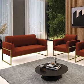 O Sofá Namoradeira e Poltrona Marisa é a escolha perfeita para quem deseja unir conforto e comodidade em um estilo elegante. Com um design único, ele possui uma Base Industrial Alta em Metal Dourado que harmoniza com o seu belíssimo tom terra, criando uma combinação elegante de conforto e estilo. Ele é perfeito para quem busca móveis que não só sejam bonitos, mas que também proporcionem bem-estar. Ideal para compor salas de estar, recepções, bibliotecas, salas de leitura, espaços de design e até áreas comerciais, essa peça versátil é pensada para ambientes que excluam beleza e aconchego. Sua estrutura, em madeira de reflorestamento de eucalipto, oferece resistência e sustentabilidade, suportando até 180 kg, garantindo segurança para usuários de diferentes biotipos. O conforto é outro destaque, com estofado em espuma prorelax D-23, que proporciona suporte e maciez ideais. Revestido em Bouclê, um tecido maleável e sofisticado, Sofá Namoradeira e Poltrona Marisa segue a tendência do momento com um toque suave e quente, remetendo à textura natural da lã. Leve e fácil de transportar, o Sofá Namoradeira e Poltrona é um item que agrega charme e durabilidade ao seu espaço. Não perca a oportunidade de adquirir essa peça exclusiva que fará toda a diferença na sua decoração e no seu bem-estar. Aproveite agora!OBSERVAÇÃO IMPORTANTE: A é realizada no informado, não realizamos o para andares superiores, como subir escadas, elevadores ou guinchos. Não realizamos montagens, desmontagens ou instalações. Todos esses serviços são de responsabilidade do comprador. Dimensões do Sofá Namoradeira: Altura Total: 81 cm Largura Total: 114 cm Profundidade Total: 64 cm Altura do Encosto: 36 cm Largura do Assento: 96 cm Profundidade do Assento: 48 cm Altura do chão ao Assento: 45 cm Espessura do Braço: 9 cm Altura interna do Braço: 20 cm Espessura do Assento: 18 cm Tamanho dos pés: 30 cm Peso: 20 kg Dimensões do Poltrona: Altura Total: 81 cm Largura Total: 64 cm Profundidade Total: 64 cm Altura do Encosto: 36 cm Largura do Assento: 47 cm Profundidade do Assento: 48 cm Altura do chão ao Assento: 45 cm Espessura do Braço: 9 cm Altura interna do Braço: 20 cm Espessura do Assento: 18 cm Tamanho dos pés: 30 cm Peso: 16 kg Especificações do Produto: Estrutura: Madeira de Reflorestamento de Eucalipto Espuma: D-23 Tecido: Bouclê Peso Suportado: Até 180 Kg Tipo de Pés: Base Industrial Alta Tipo de Encosto: Fixo Tipo de Assento: Fixo Complexidade da Montagem: Baixo Montagem: O produto vai montado, apenas parafusar a base : 90 dias contra de fabricação Instruções de Limpeza: Utilizar um pano limpo e levemente úmido Você irá Receber: 01 Sofá Namoradeira e 01 Poltrona - Entregue em: 02 Volumes