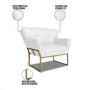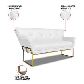 O Sofá Namoradeira e Poltrona Anitta é uma peça que combina beleza, conforto e funcionalidade. Ele tem um design contemporâneo, sofisticado e um revestimento em tecido Sintético PU Branco que harmonizam com qualquer ambiente. Possui uma base industrial dourada com um belo detalhe trabalhado no metal, que além de adicionar um toque de charme à peça, oferece um suporte sólido e seguro, garantindo conforto superior ao sentar. Ideal para sala de estar, recepções, escritórios ou qualquer outro espaço que você queira decorar com estilo e bom gosto. Produzido cuidadosamente em madeira de reflorestamento eucalipto, que garante a resistência e a sustentabilidade do produto. Ele suporta até 180 kg de peso, podendo ser utilizado por pessoas de diferentes biotipos. Ele tem um acabamento reforçado e espuma de qualidade D23, que oferece maciez e aconchego. A almofada fixa do encosto é revestida com fibra siliconada e conta com um detalhe elegante em botonê, que não só valoriza o design, mas também proporciona uma sensação de conforto inigualável. O encosto levemente triangular de ambos adiciona uma estética exclusiva, enquanto os braços, com delicados frisos na costura enriquecem ainda mais o produto. O Sofá Namoradeira e Poltrona Anitta é um kit de alta qualidade, sutileza e versatilidade. Ele é fácil de transportar, pois tem um peso leve e um tamanho compacto. O Sofá Namoradeira e Poltrona Anitta é um produto que vai fazer a diferença na sua decoração e no seu bem-estar. Ele vai trazer personalidade e inovação para o seu ambiente. Aproveite essa oferta e leve para casa um sofá namoradeira e poltrona de qualidade por um preço incrível. Essa é a sua chance de ter um conjunto atraente na sua decoração por um preço imperdível. Corra e garanta o seu antes que acabe o estoque!