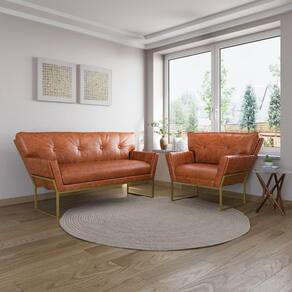 O Sofá Namoradeira e Poltrona Anitta é uma peça que combina beleza, conforto e funcionalidade. Ele tem um design contemporâneo, sofisticado e um revestimento em tecido Sintético PU que harmonizam com qualquer ambiente. Possui uma base industrial dourada com um belo detalhe trabalhado no metal, que além de adicionar um toque de charme à peça, oferece um suporte sólido e , garantindo conforto superior ao sentar. Ideal para sala de estar, recepções, escritórios ou qualquer outro espaço que você queira decorar com estilo e bom gosto. Produzido cuidadosamente em madeira de reflorestamento eucalipto, que garante a resistência e a sustentabilidade do produto. Ele suporta até 180 kg de peso, podendo ser utilizado por pessoas de diferentes biotipos. Ele tem um acabamento reforçado e espuma de qualidade D23, que oferece maciez e aconchego. A almofada fixa do encosto é revestida com fibra siliconada e conta com um detalhe elegante em botonê, que não só valoriza o design, mas também proporciona uma sensação de conforto inigualável. O encosto levemente triangular de ambos adiciona uma estética exclusiva, enquanto os braços, com delicados frisos na costura enriquecem ainda mais o produto. O Sofá Namoradeira e Poltrona Anitta é um kit de alta qualidade, sutileza e versatilidade. Ele é fácil de transportar, pois tem um peso leve e um tamanho compacto. O Sofá Namoradeira e Poltrona Anitta é um produto que vai fazer a diferença na sua decoração e no seu bem-estar. Ele vai trazer personalidade e inovação para o seu ambiente. Aproveite essa e leve para casa um sofá namoradeira e poltrona de qualidade por um preço incrível. Essa é a sua chance de ter um conjunto atraente na sua decoração por um preço imperdível. Corra e garanta o seu antes que acabe o estoque!