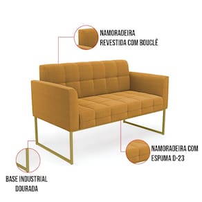 O Sofá Namoradeira e Poltrona Elisa é uma mobília que combina elegância, conforto e durabilidade. Ele tem um design retrô e sofisticado, com Base Industrial Dourada e revestimento em tecido Bouclê Mostarda, que harmonizam com qualquer ambiente. Ele é ideal para sala de estar, recepções, escritórios, cozinhas ou qualquer outro espaço que você queira decorar com estilo e bom gosto. Ele tem uma estrutura em madeira de reflorestamento eucalipto, que garante a resistência e a sustentabilidade do produto. Ele suporta até 180 kg de peso, podendo ser utilizada por pessoas de diferentes biotipos. Ele tem um acabamento reforçado e espuma de qualidade D23, que oferece maciez e aconchego. Ele contém detalhes de costura no encosto e assento, resultando em um acabamento impecável, conferindo muito mais valor e elegância ao produto. O Sofá Namoradeira e Poltrona Elisa é um móvel de alta qualidade, beleza e funcionalidade. Ele é fácil de transportar, pois tem um peso leve e um tamanho compacto. O Sofá Namoradeira e Poltrona Elisa é um produto que vai fazer a diferença na sua decoração e no seu bem-estar. Ele vai trazer charme, conforto e durabilidade para o seu ambiente. Aproveite essa oferta e leve para casa um Sofá Namoradeira e Poltrona de qualidade por um preço incrível. Essa é a sua chance de ter um Sofá Namoradeira e Poltrona maravilhoso por um preço imperdível. Corra e garanta o seu antes que acabe o estoque!