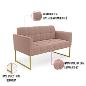 O Sofá Namoradeira e Poltrona Elisa é uma mobília que combina elegância, conforto e durabilidade. Ele tem um design retrô e sofisticado, com Base Industrial Dourada e revestimento em tecido Bouclê Rosê, que harmonizam com qualquer ambiente. Ele é ideal para sala de estar, recepções, escritórios, cozinhas ou qualquer outro espaço que você queira decorar com estilo e bom gosto. Ele tem uma estrutura em madeira de reflorestamento eucalipto, que garante a resistência e a sustentabilidade do produto. Ele suporta até 180 kg de peso, podendo ser utilizada por pessoas de diferentes biotipos. Ele tem um acabamento reforçado e espuma de qualidade D23, que oferece maciez e aconchego. Ele contém detalhes de costura no encosto e assento, resultando em um acabamento impecável, conferindo muito mais valor e elegância ao produto. O Sofá Namoradeira e Poltrona Elisa é um móvel de alta qualidade, beleza e funcionalidade. Ele é fácil de transportar, pois tem um peso leve e um tamanho compacto. O Sofá Namoradeira e Poltrona Elisa é um produto que vai fazer a diferença na sua decoração e no seu bem-estar. Ele vai trazer charme, conforto e durabilidade para o seu ambiente. Aproveite essa oferta e leve para casa um Sofá Namoradeira e Poltrona de qualidade por um preço incrível. Essa é a sua chance de ter um Sofá Namoradeira e Poltrona maravilhoso por um preço imperdível. Corra e garanta o seu antes que acabe o estoque!